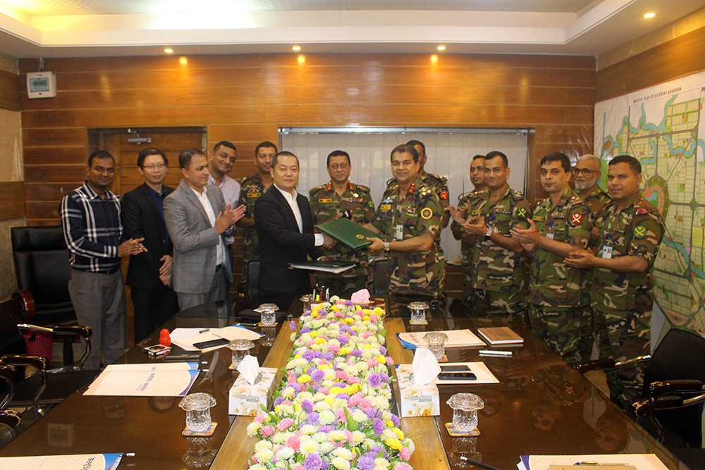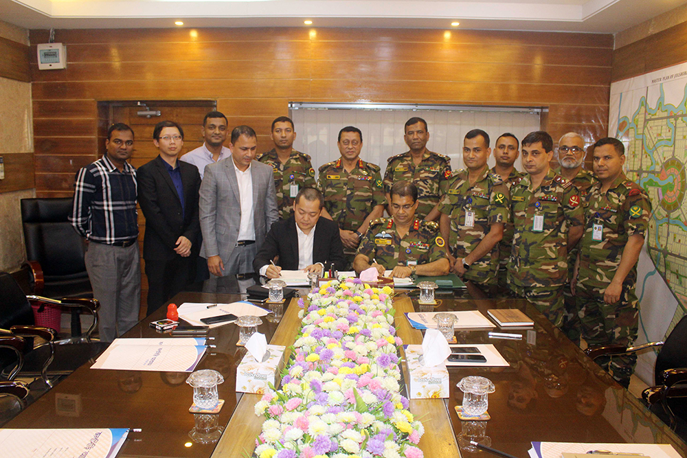 On July 29, Huadu (Shanghai) Architecture & Urban Design Group (HDD) and Jolshiri Abashon Authority which is managed by Bangladesh Army held the signing ceremony of the Jolshiri project in Dhaka. Mr. Yang Cai, CEO of HDD, Mr. Bhuyan Muhammad Hussain, Director of HDD Overseas Marketing Department, and Bangladesh side Major General Abu Syeed Md Masud, BSP, Chairman Jolshiri Abashon, Brigadier General Shah-Noor- Jilani, BSP, ndc,psc Managing Director Jolshiri Abasho, and other Army Officers attended the signing ceremony.