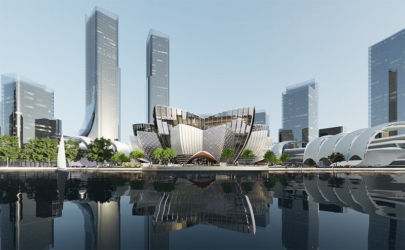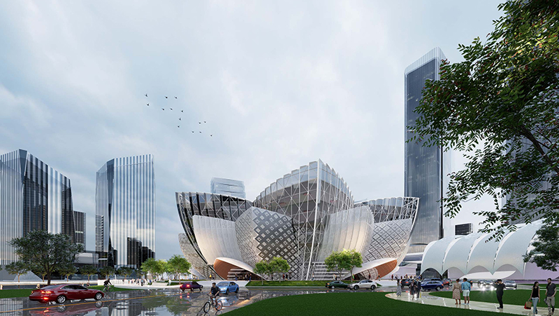 Inspired by the white water lily, Bangladesh's national flower, the design seamlessly integrates the elegance of the water lily into the commercial complex, perpetuating the pure and noble aesthetics of the Bangladeshi nation and creating a uniquely charming urban landmark.