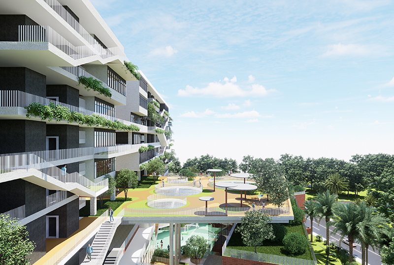 In order to improve the standard of living in the city of Dhaka, the government of Bangladesh conceived for the city of Jolshiri to have a CBD, which comprises of commercial facilities, modern residential buildings, educational and medical facilities covering about 500,000㎡ in area. The design uses a modern approach to solve the issues relating to ecology and energy-saving.